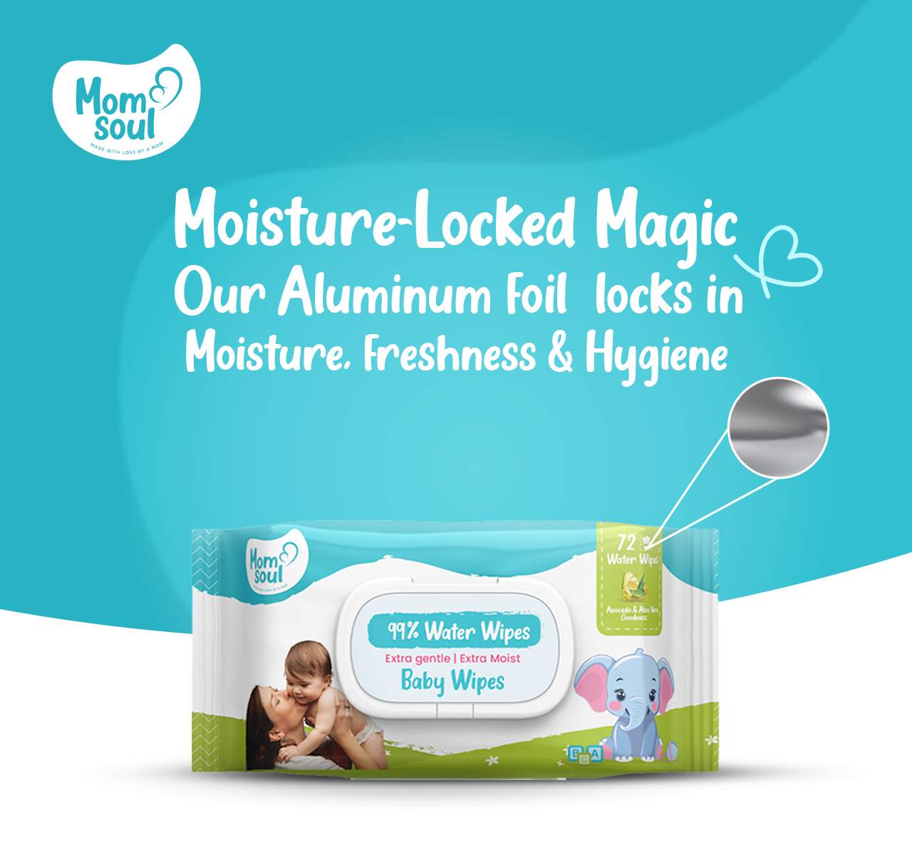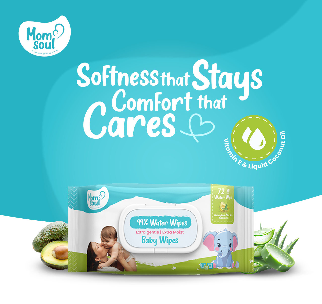 At Momsoul, every wipe is made with love, care, and science — combining 99% pure water with the goodness of natural ingredients to give your baby the gentlest cleansing experience possible.
